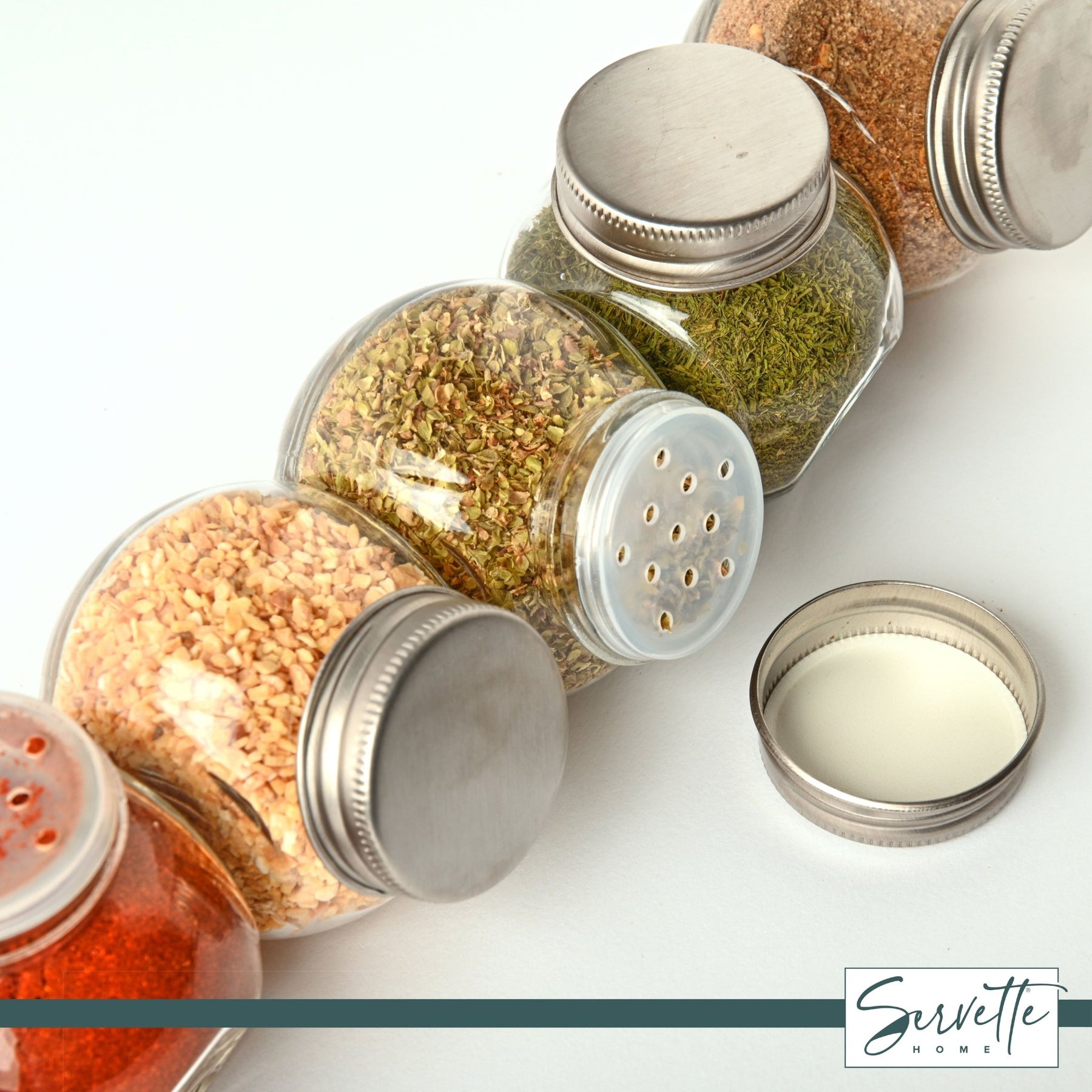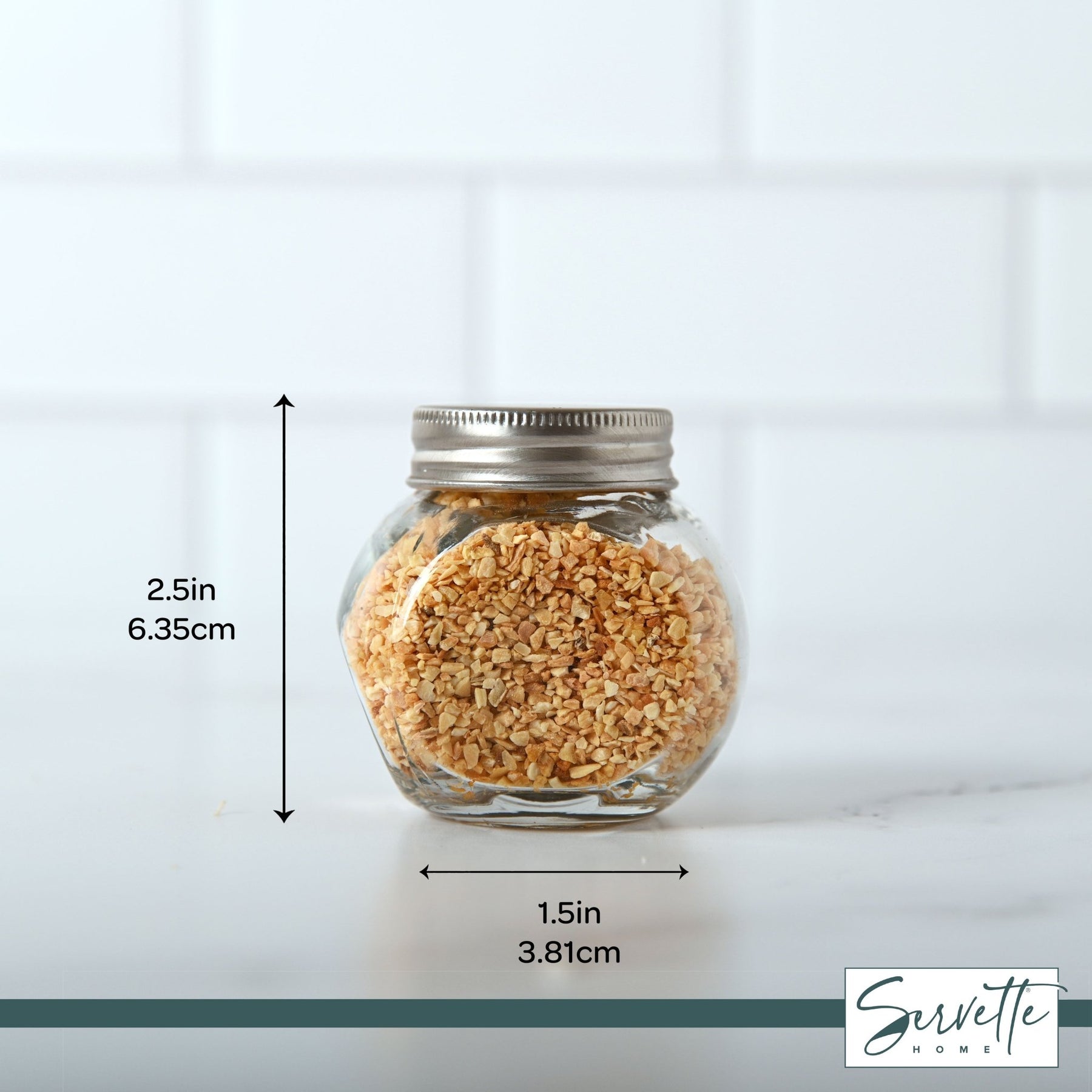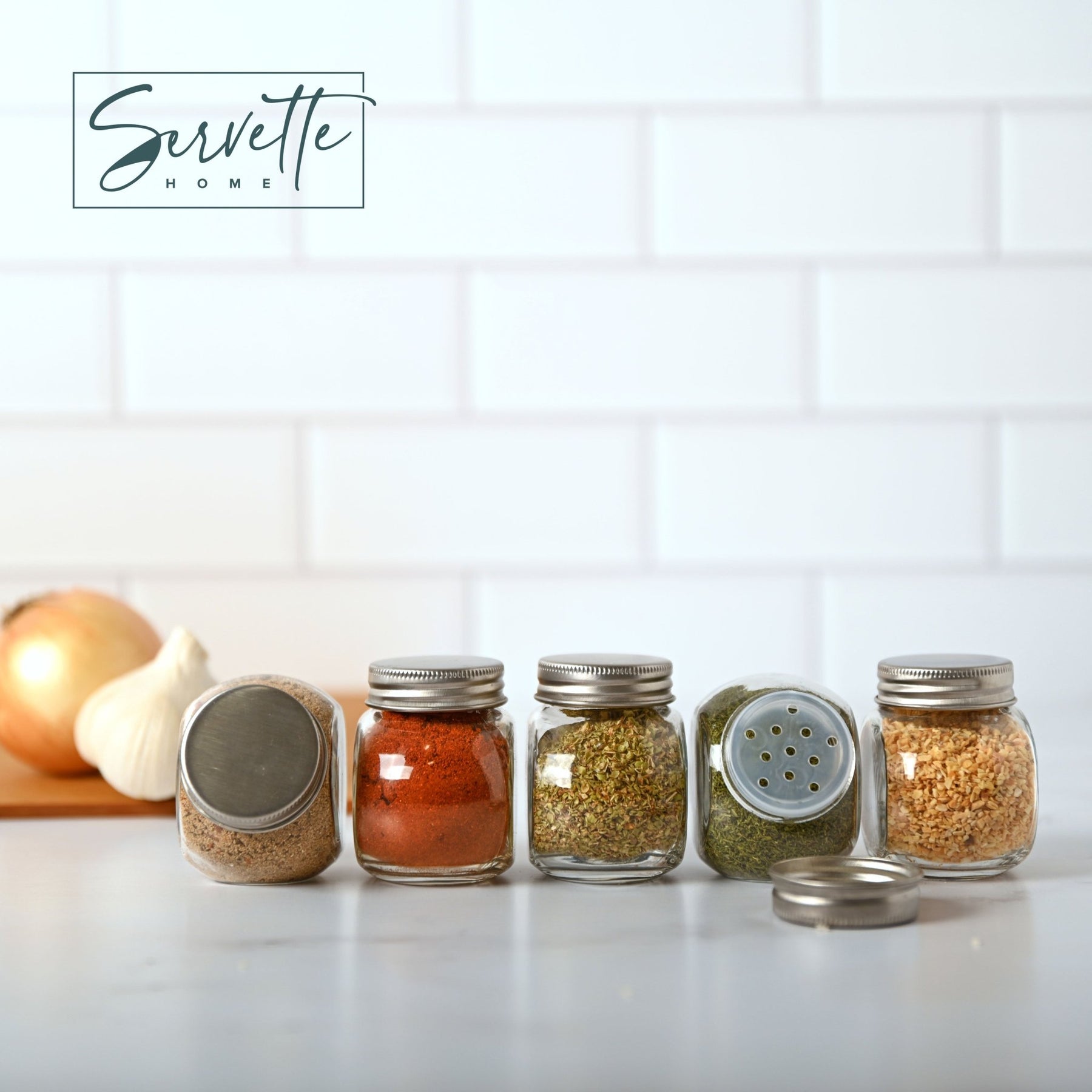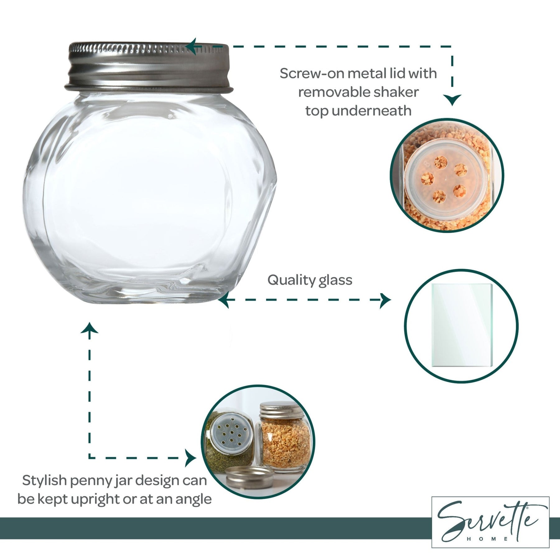 Regular price $8.99 Sale price $7.99 Save $1.00Organize your spices in style with this versatile 3.4-ounce glass penny jar. The jar can be kept upright or at an angle thanks to its 2 flat edges. The classic design features a durable metal screw-on lid that provides a secure seal to maintain freshness. What sets this jar apart is its convenient removable shaker top hidden beneath the lid - perfect for easy seasoning while cooking. The clear glass construction lets you quickly identify contents, while the compact 100 ml capacity makes it ideal for storing your favorite spices, herbs, and seasonings. These functional jars help keep your kitchen organized while adding a touch of timeless appeal to your spice storage. The wide mouth design allows for easy filling and cleaning, making these jars practical for both everyday use and pantry organization.