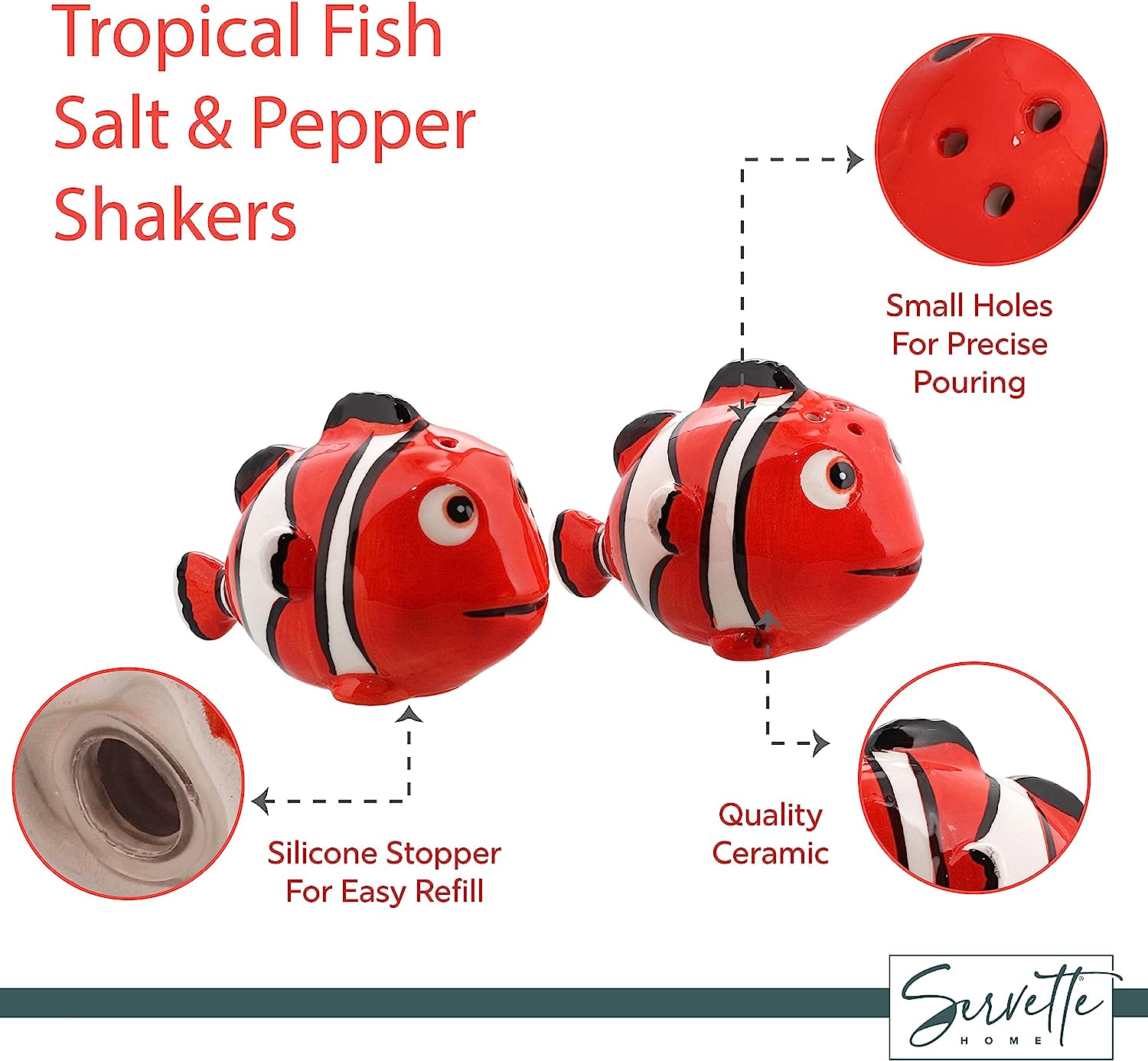 Regular price $14.99With the secure silicone cover on the bottom of the salt and pepper shaker, it is so easy to fill. Just remove the seal and pour your spices in! The salt and pepper shakers has perfect sized holes to pour easily. There are small holes evenly distributed on these ceramic salt and pepper shakers. You and your family can enjoy the pleasure of cooking. Our shakers are made to last. These glazed ceramic and kiln fired for a non-porous and stunning finish. Enjoy the details and beautiful colors. Gift these to friends and family ! The salt and pepper shakers are sure to make any kitchen pop! Add a little something to your table while enjoying your meal.