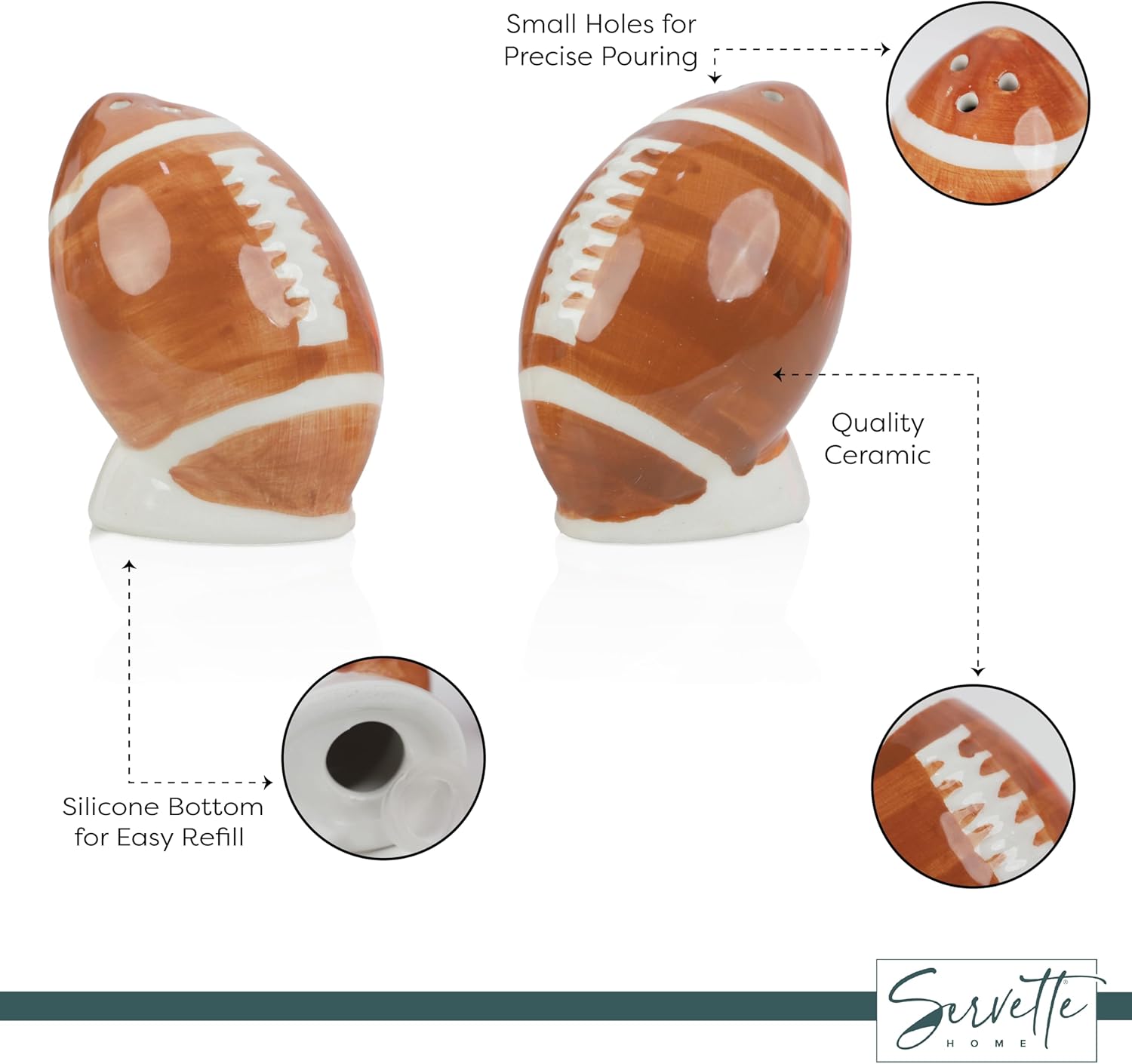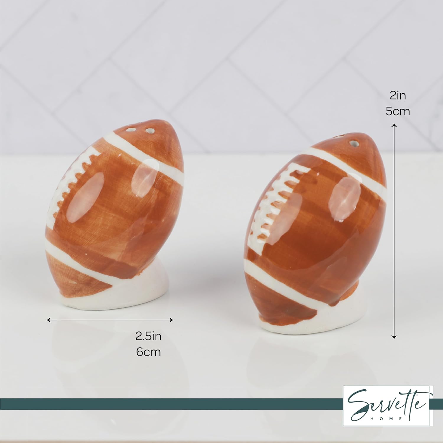 Regular price $14.99This salt and pepper shaker set is perfect for any football lover. Crafted from high-quality ceramic, these shakers are easy to use and will last you a long time. The sleek design adds an elegant touch to your dining table or kitchen countertop making it the perfect gift for any football enthusiast! The set includes two pieces of durable ceramic footballs, with silicone inserts that make it easy to refill whenever needed. With this stylish salt & pepper shaker set, you can add a bit of flavor without compromising on style - making it the ideal gift for anyone looking to spice up their football season!