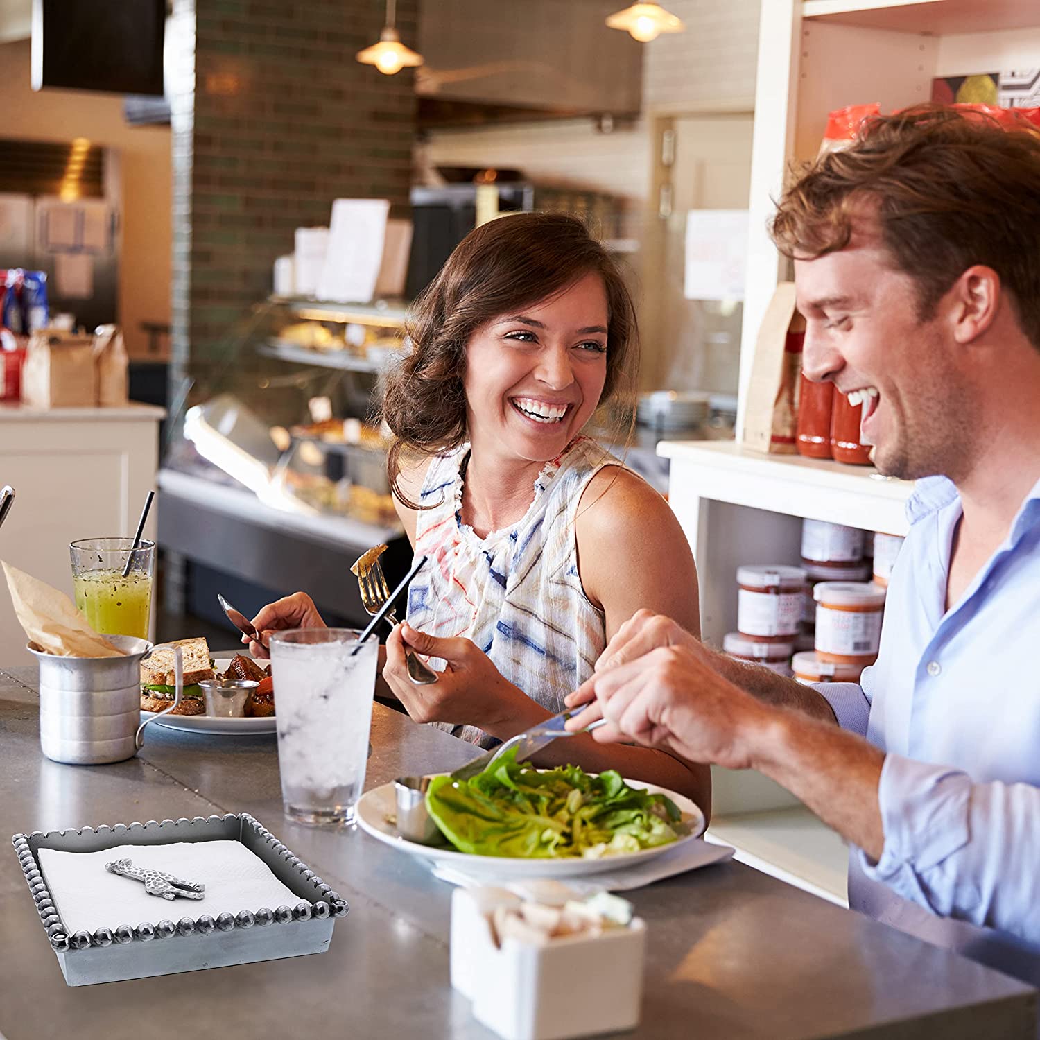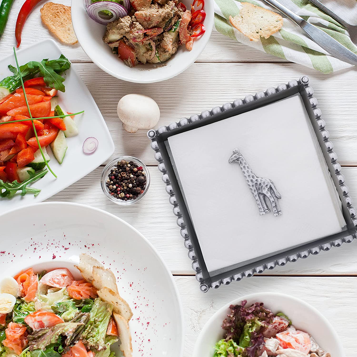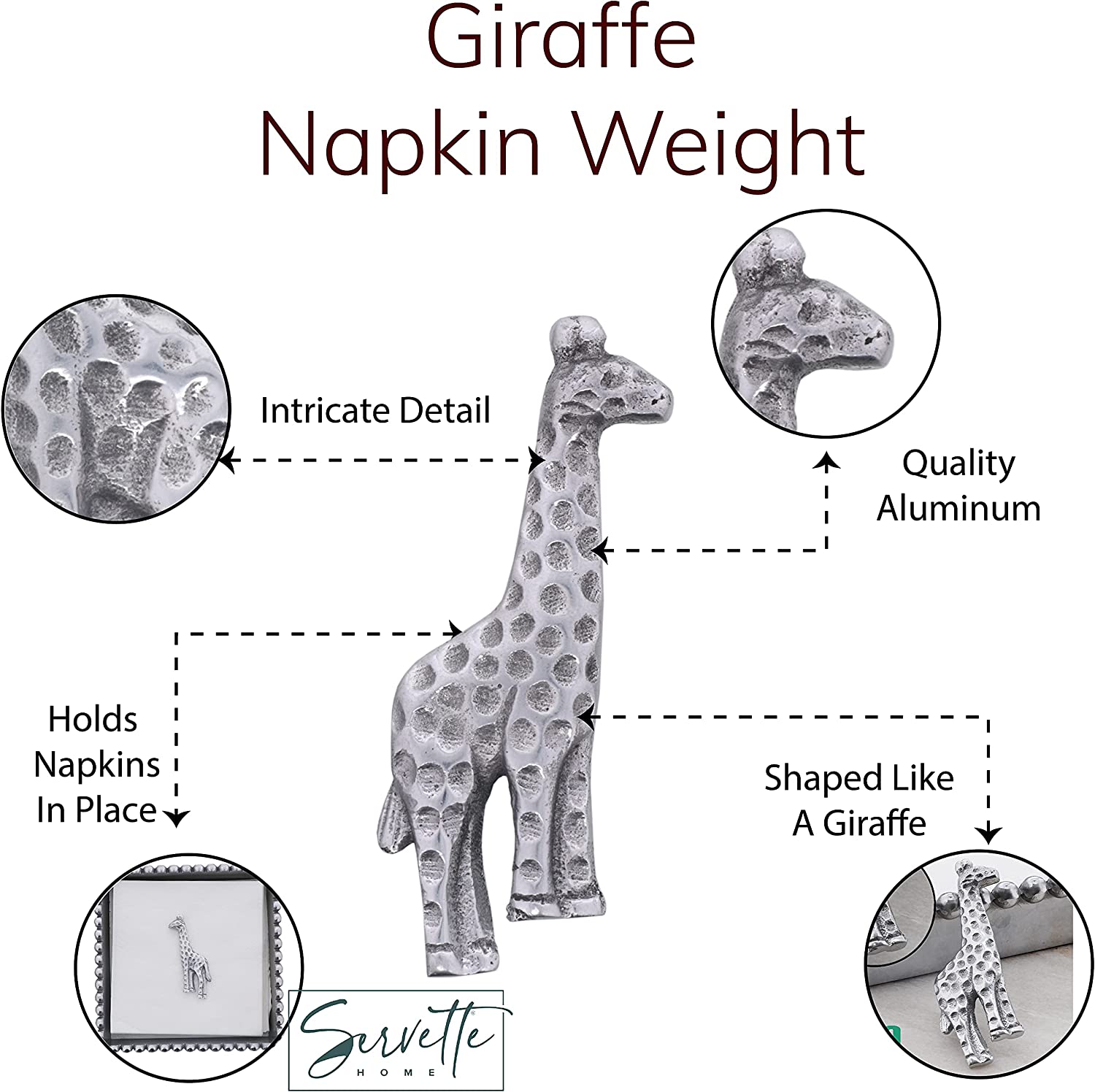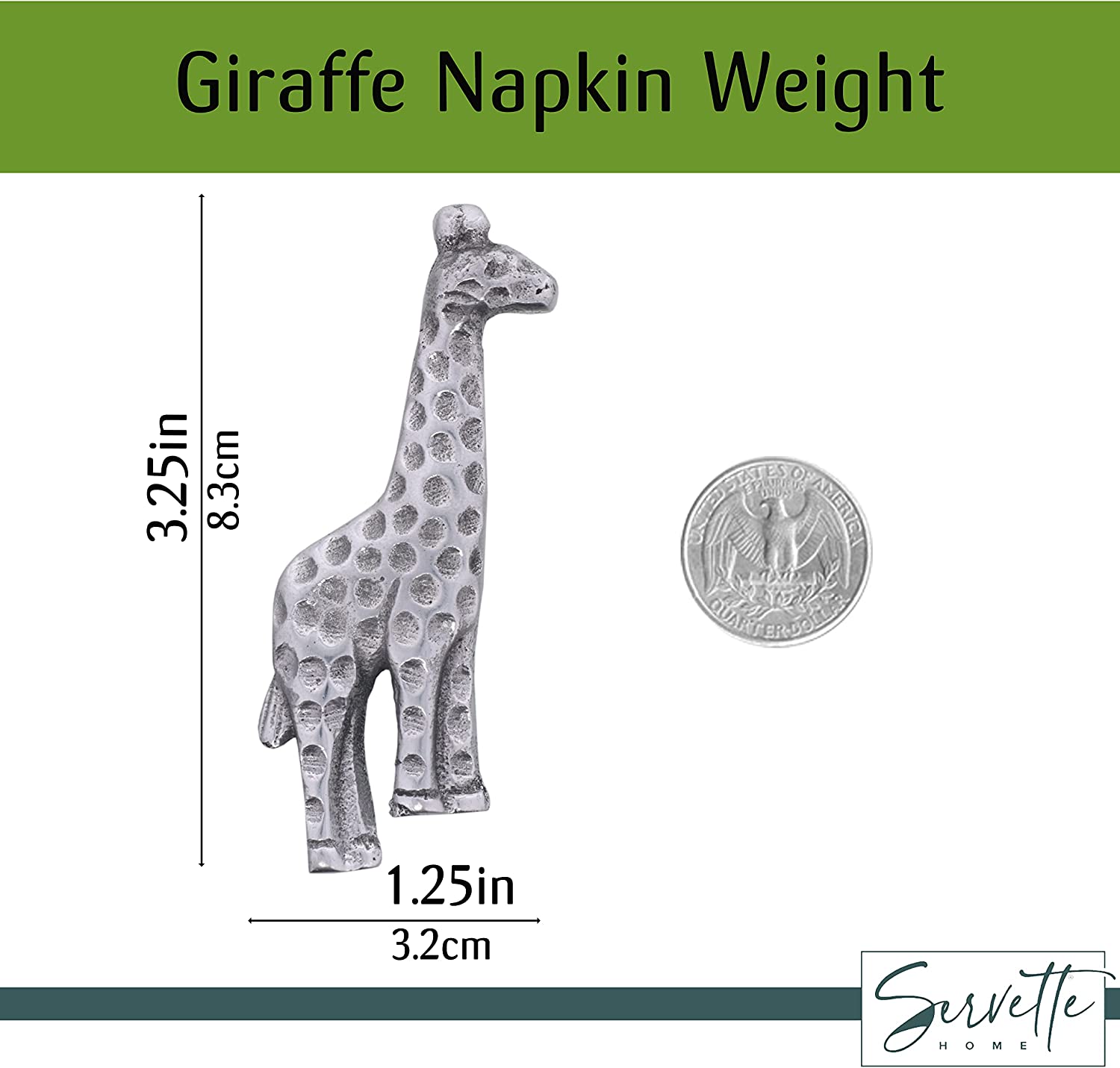 Add some cute accessories to your kitchen table with this adorable silver napkin weight. This weight will hold down napkins to keep them securely in place. Measures approx. 2.5 x 3" wide.
