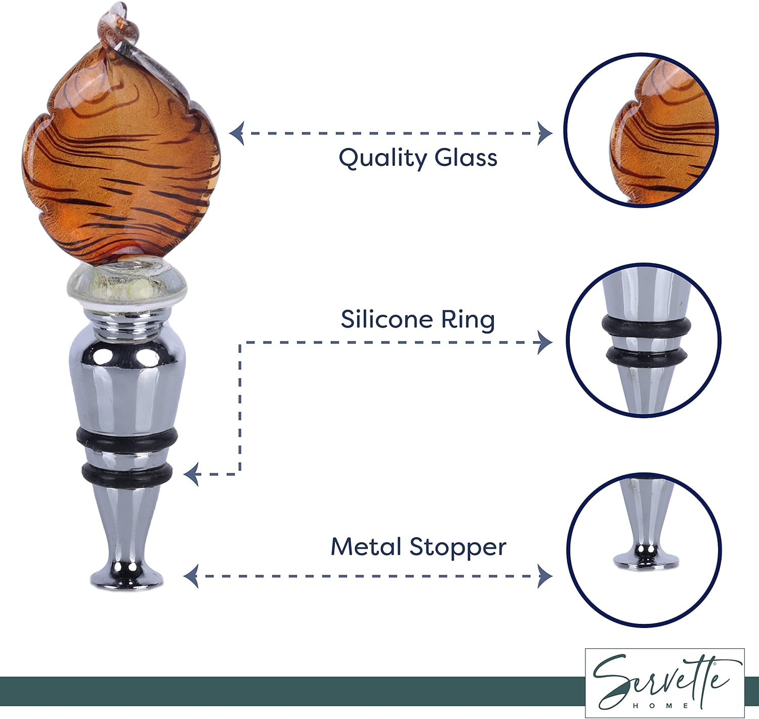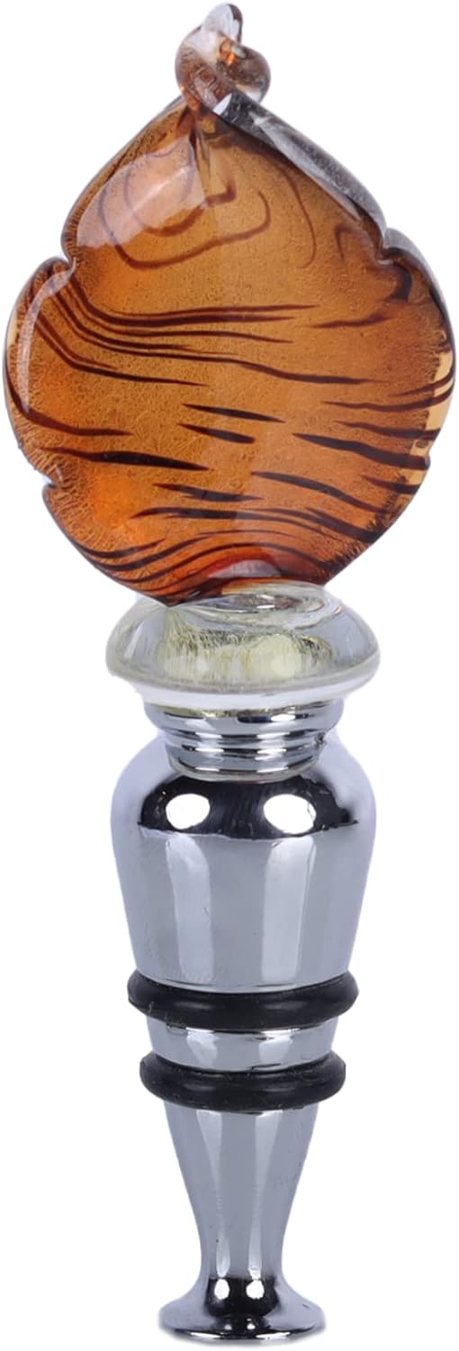 Glass Curved Leaf Animal Print Bottle Stopper - Brown Stripe