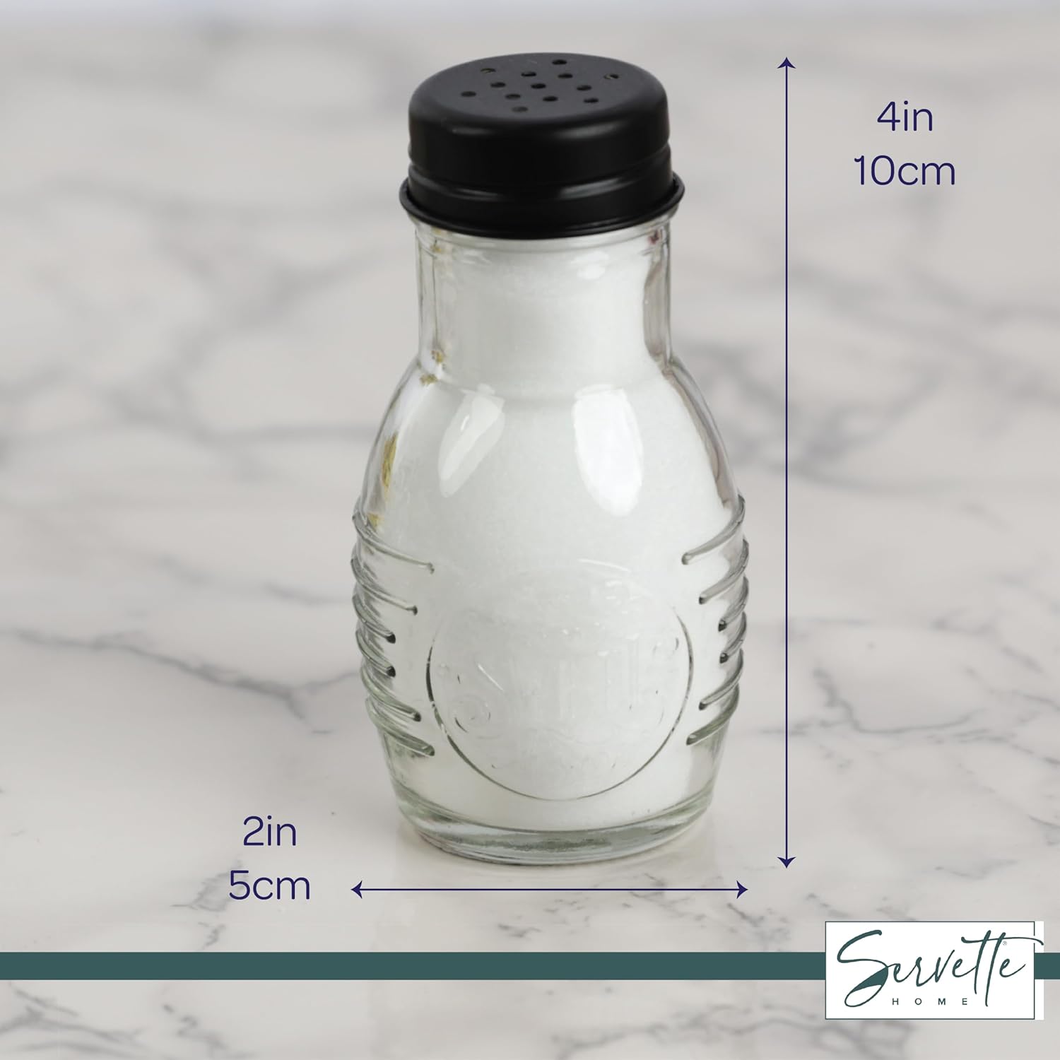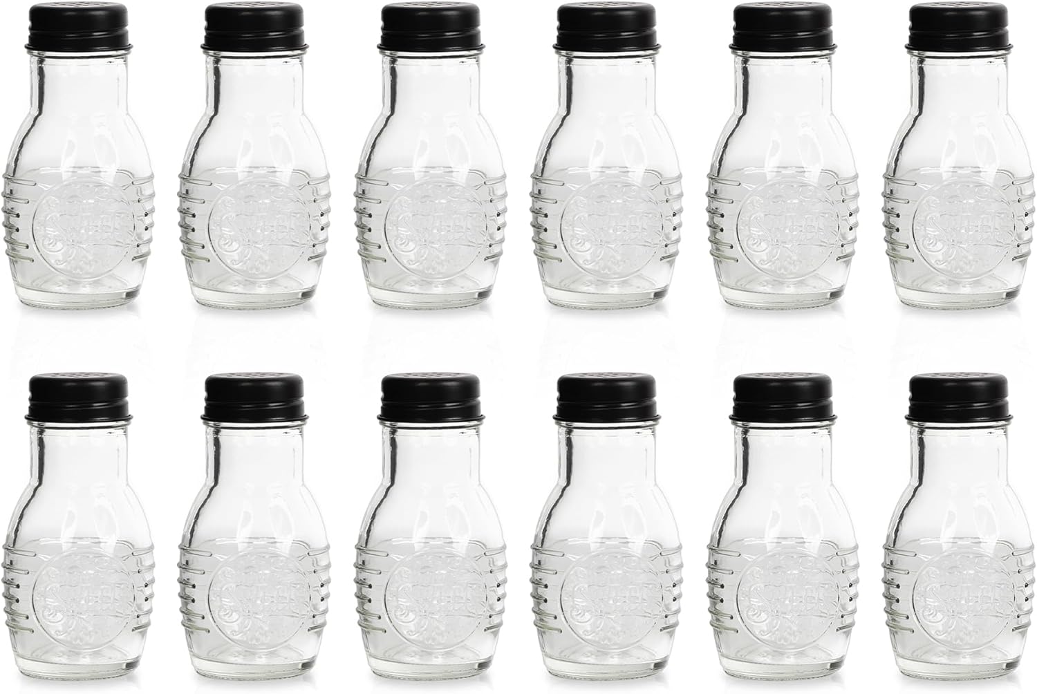 Regular price $21.99These charming salt and pepper shakers add a touch of warmth and personality to any kitchen or dining table. Crafted from clear glass with a matte black metal lid, the set features the endearing phrase "home sweet home" embossed on the front of each jar. At just 4 inches tall and 2 inches wide, the shakers offer ample 3 ounce capacity while taking up minimal counter space. Their see-through glass construction allows for easy visibility of contents, and the small holes in the lids provide precise, controlled pouring every time. Whether filling the shakers or enjoying a meal, these shakers' cozy homespun design is sure to bring a smile.