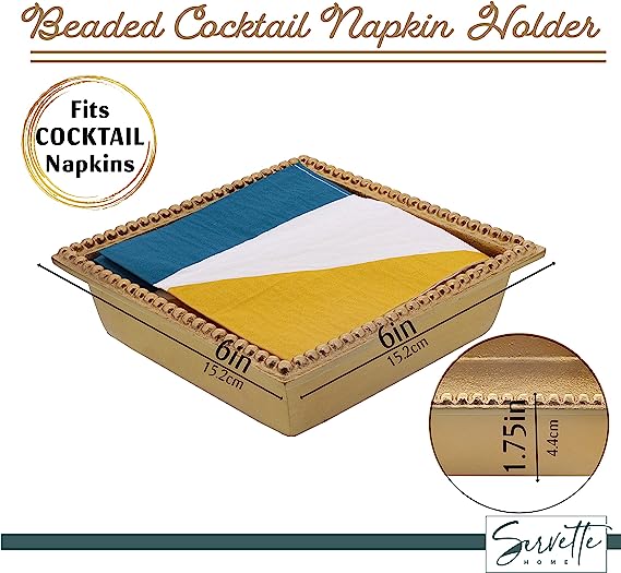 - Convenient size: holds lunch size napkins. Beaded edge flat