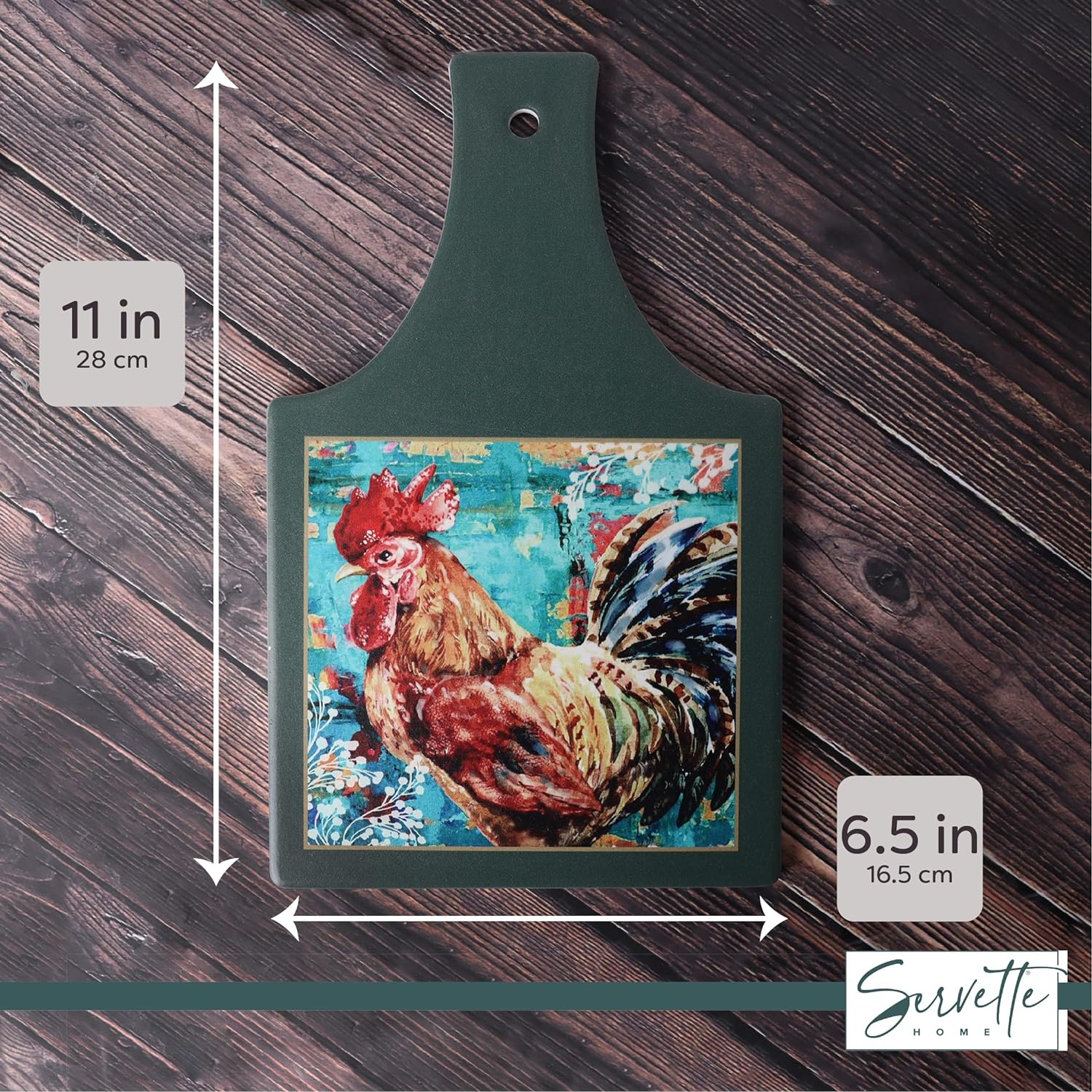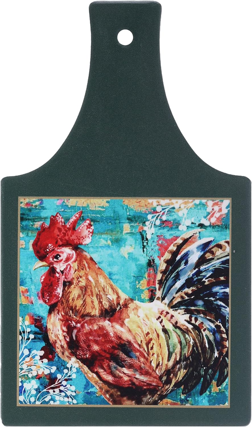 Rooster Trivet Heat Resistant Ceramic with Slip-Free Cork Farmhouse Design (Green)