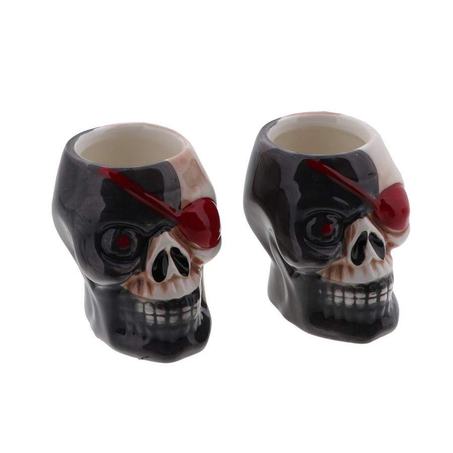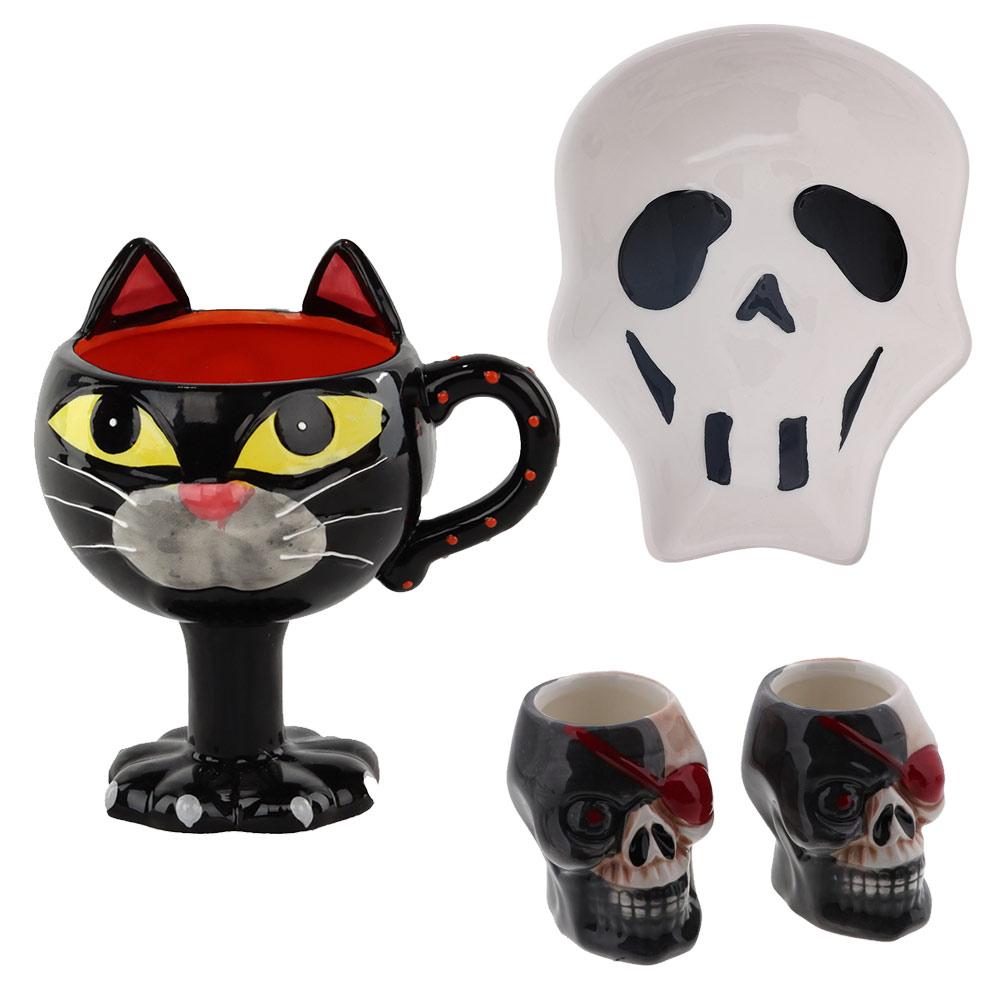 Skull Candy Dish & Halloween Goblet Mug & Skull with Red Eye Patch Shot Glass