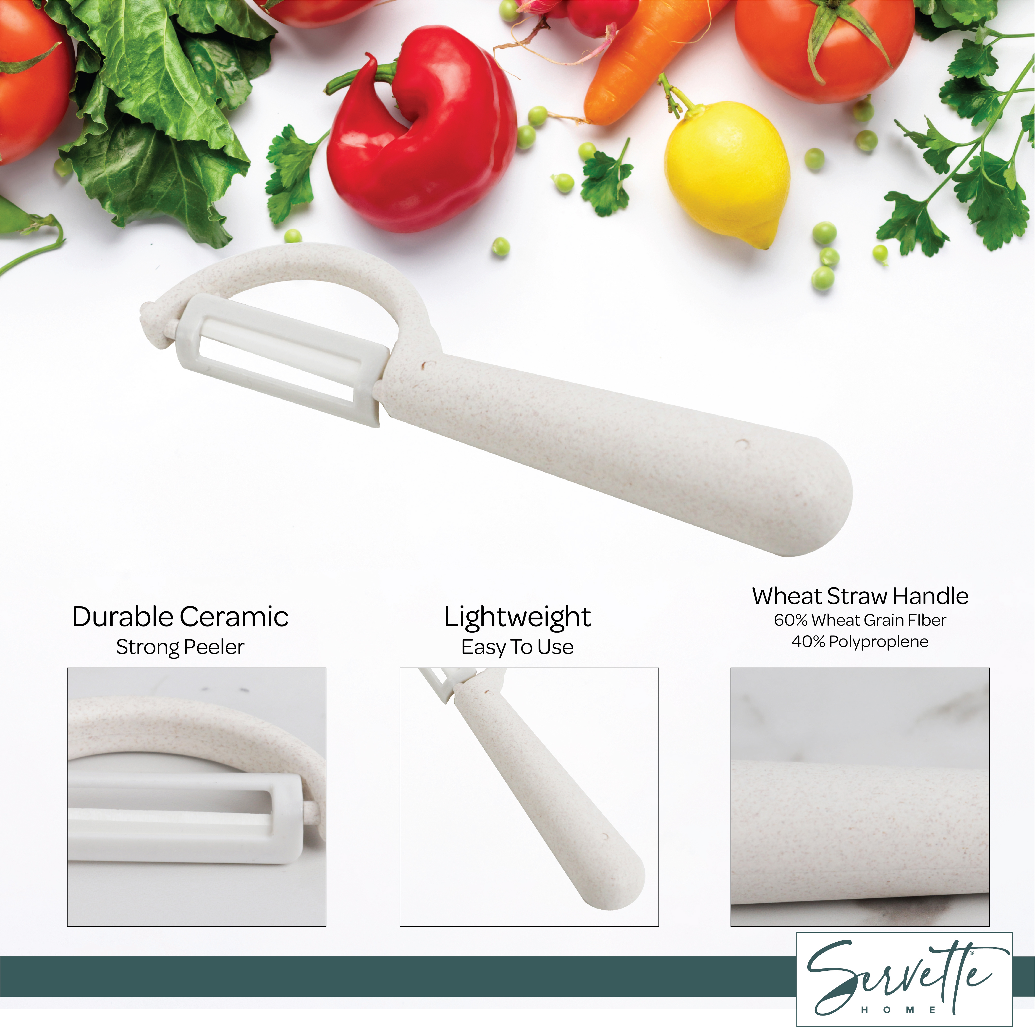 Regular price $8.99 Sale price $7.99 Save $1.00Fruit and Vegetable Peelers with Stainless Steel or Ceramic Blades, Wheat Straw