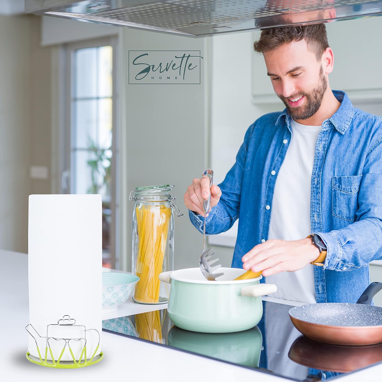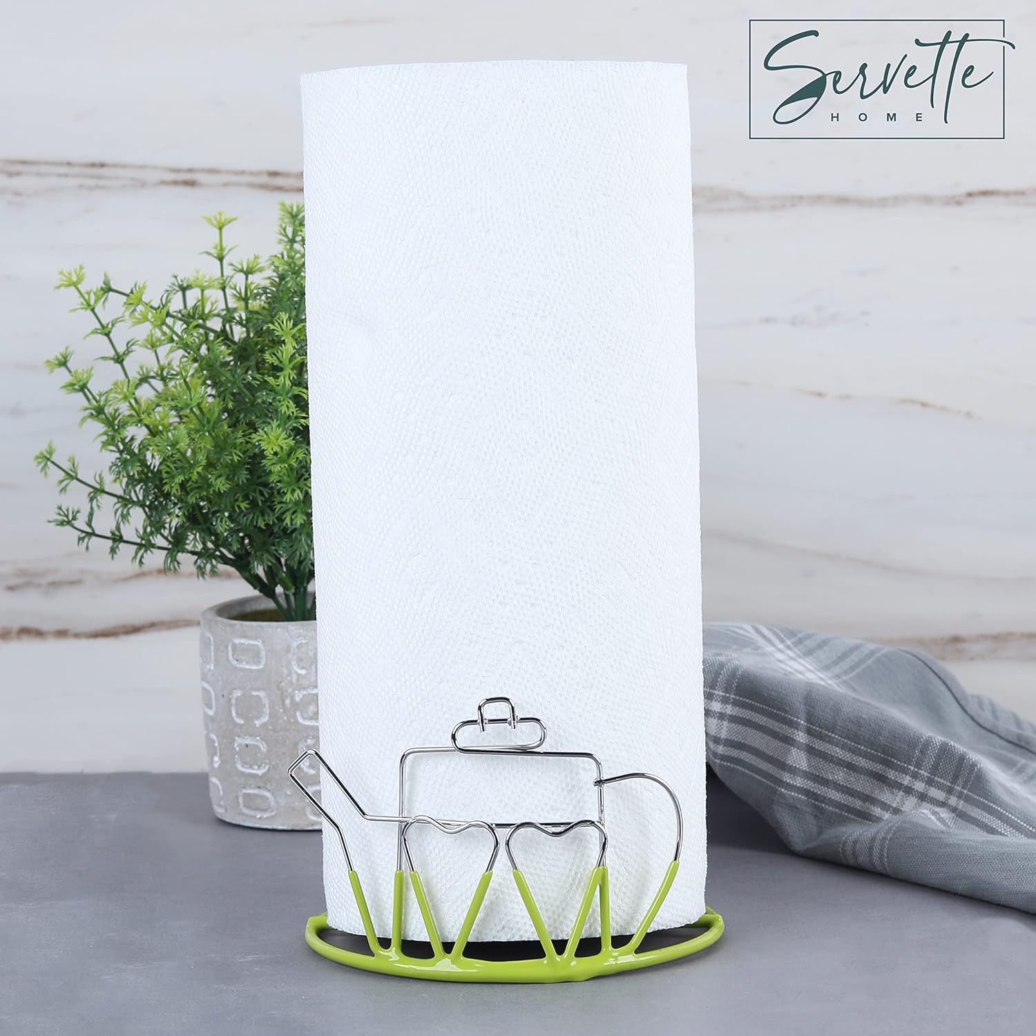 Wire Teapot Designed Paper Towel Holder - Green
