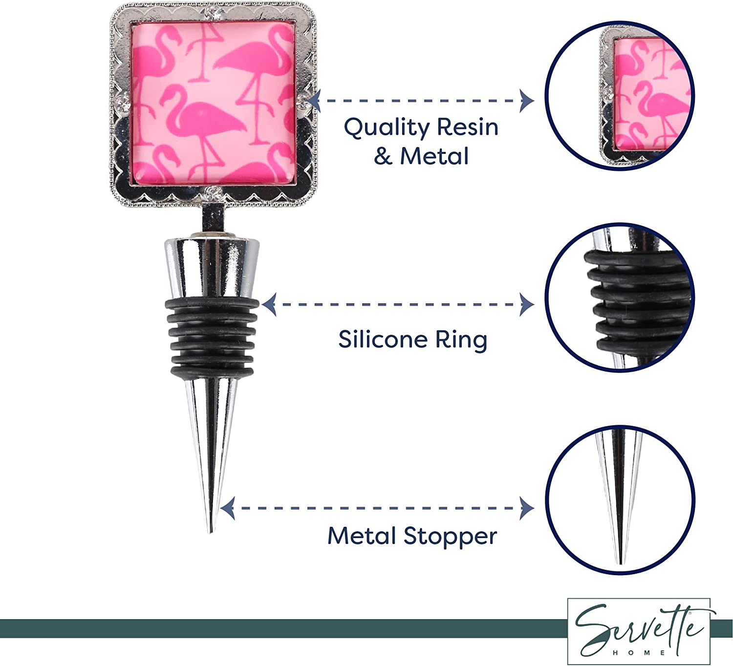 Regular price $13.99Nautical themed wine bottle stopper from Servette Home has square metal topper with a flamingo design so you and your guests can easily spot where the wine is. Stainless steel material makes for easy insertion and removal. Also features flexible rubber rings for airtight seal, allowing for your wine to stay preserved. Wine stopper's durable materials ensure no cracking, fading, or rusting. Great gift for all occasions, such as housewarming parties, weddings, or the birthday of your wine lover friend! Perfect for your next beach party or tropical getaway!