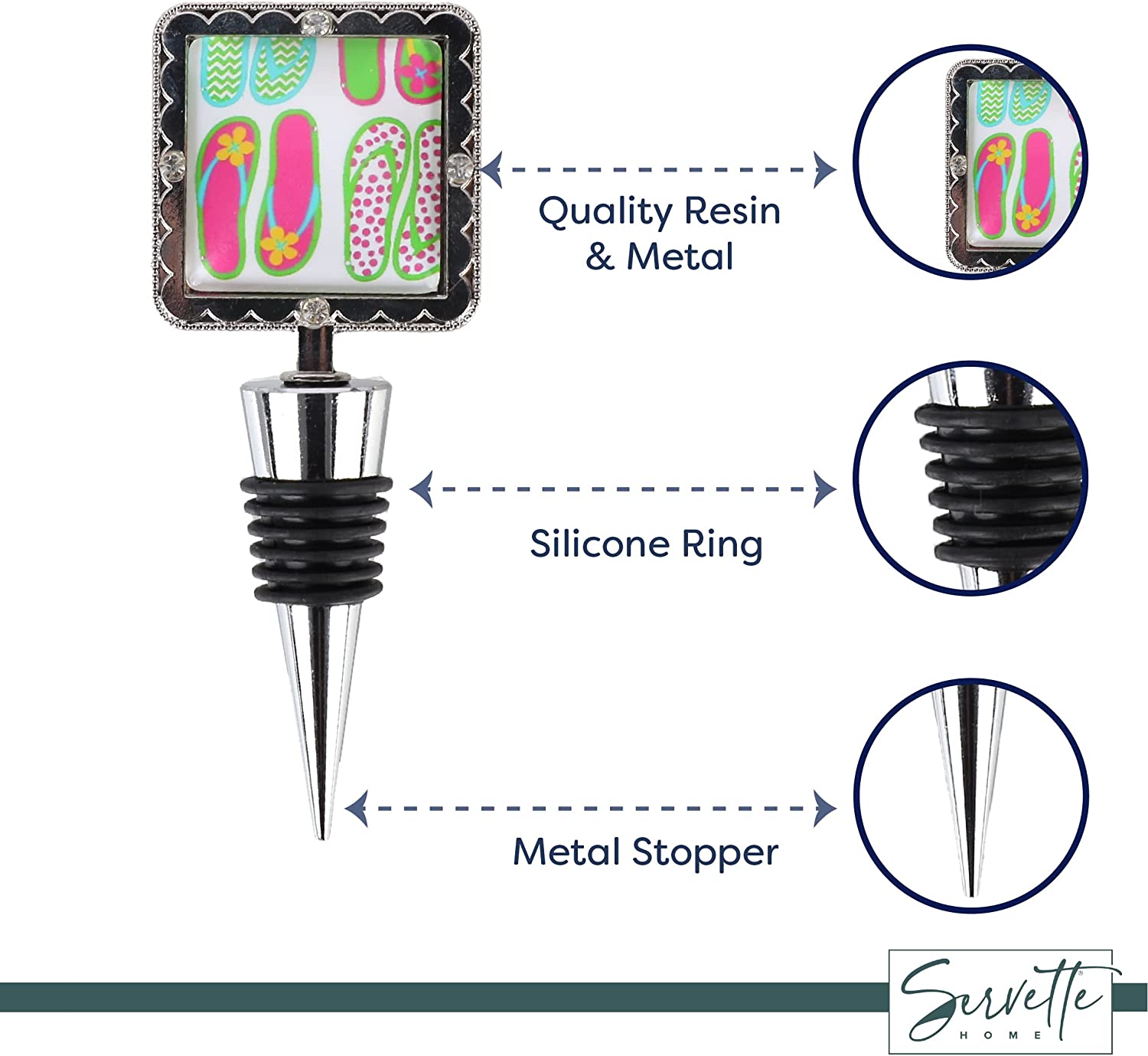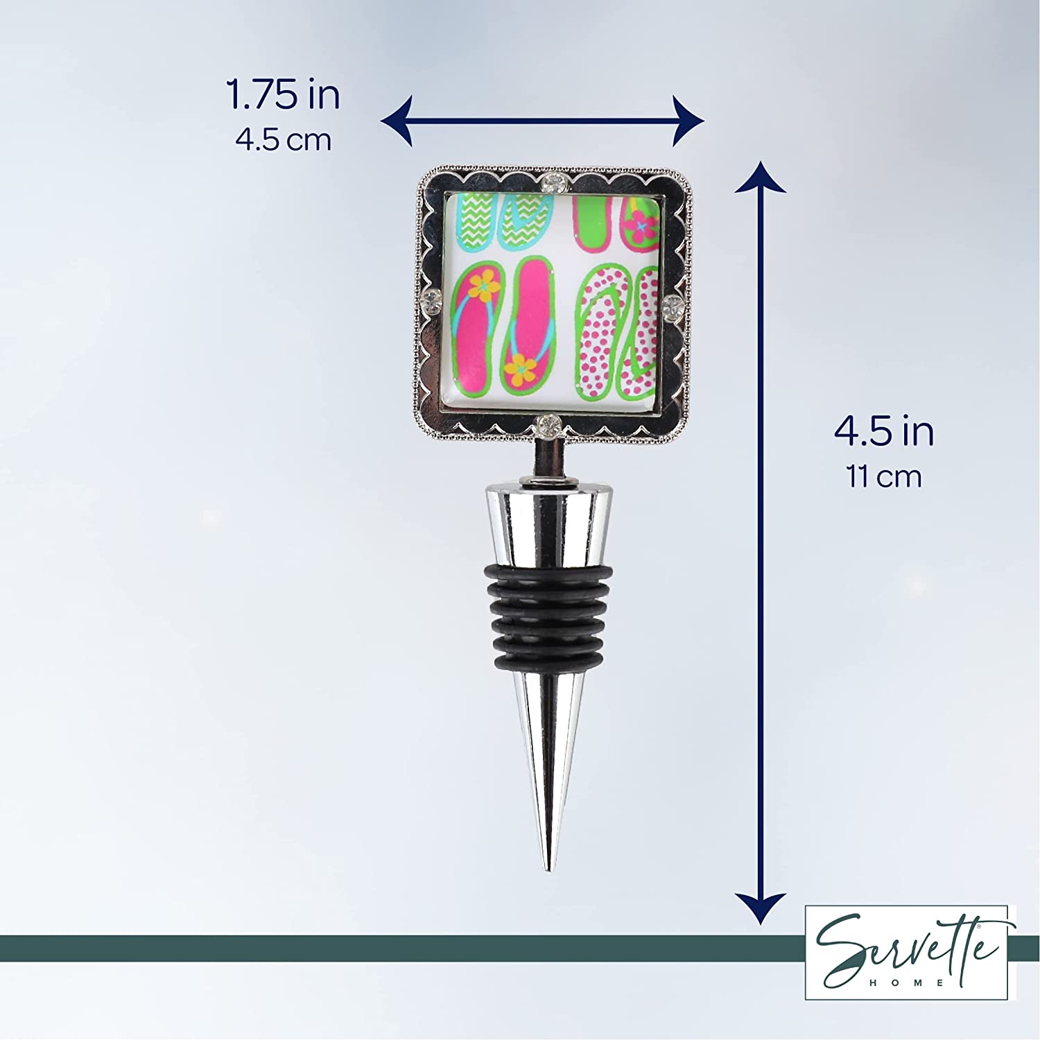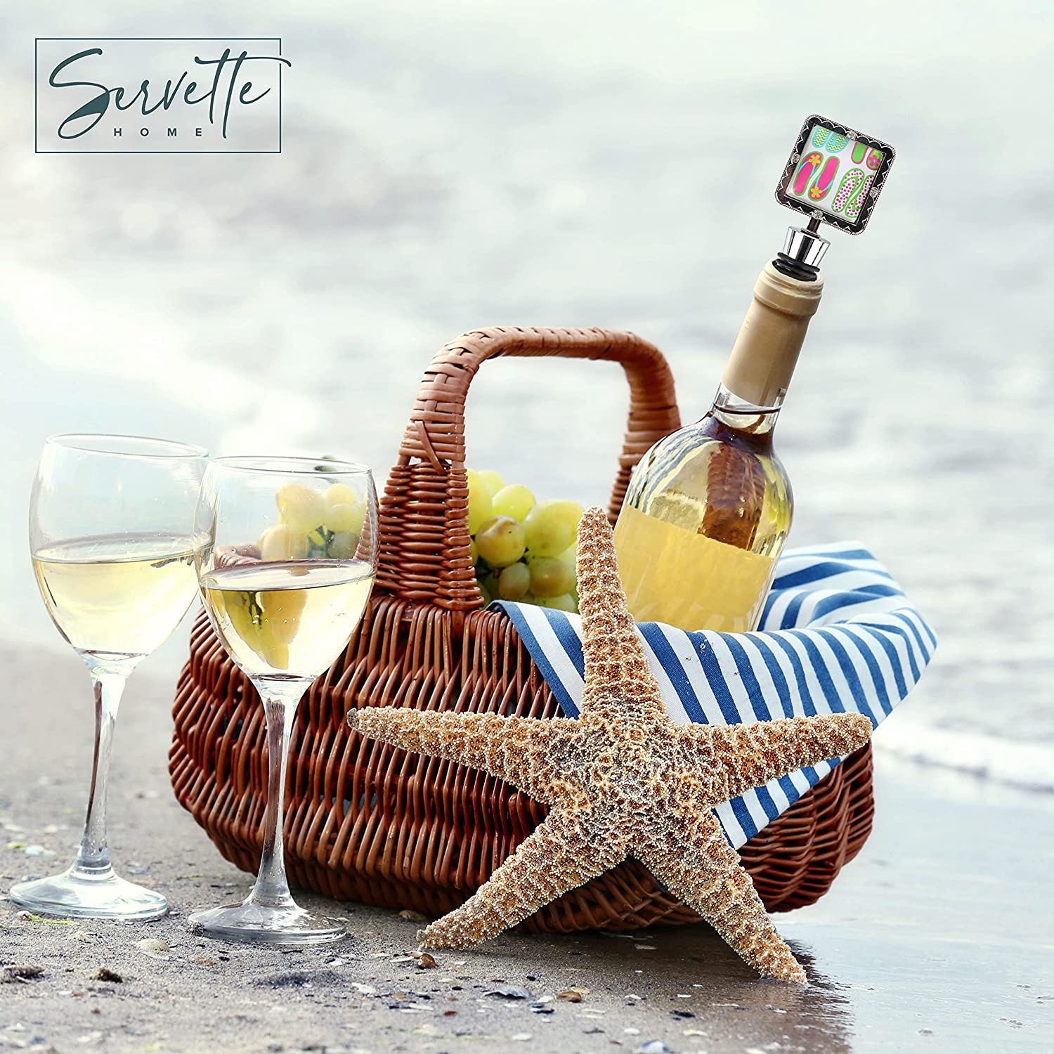 Regular price $13.99Great gift for all occasions, such as housewarming parties, weddings, or the birthday of your wine lover friend! Nautical themed wine bottle stopper from Servette Home has square metal topper with a flipflop design so you and your guests can easily spot where the wine is. Stainless steel material makes for easy insertion and removal. Also features flexible rubber rings for airtight seal, allowing for your wine to stay preserved. Wine stopper's durable materials ensure no cracking, fading, or rusting. Perfect for your next beach party or tropical getaway!
