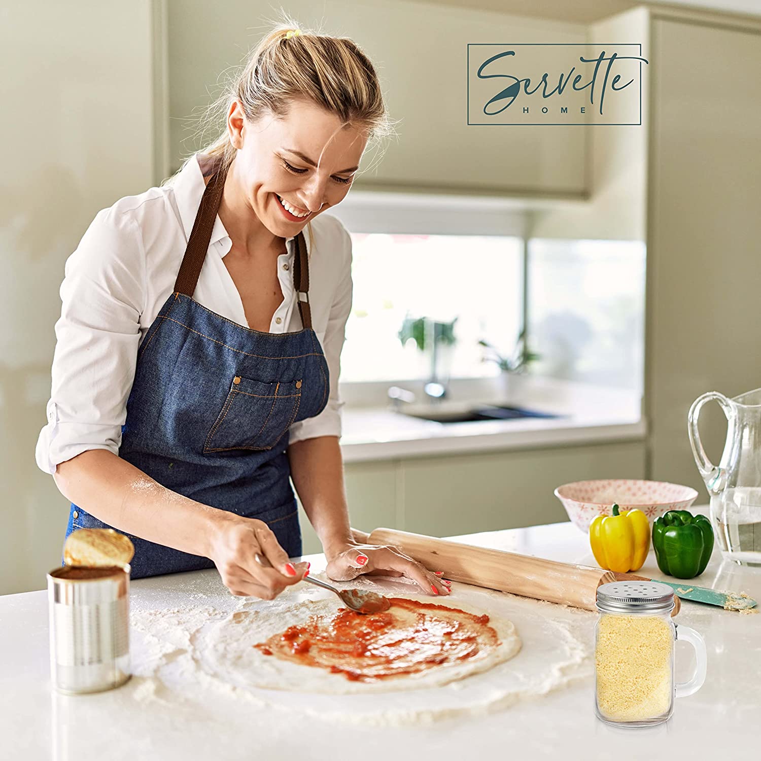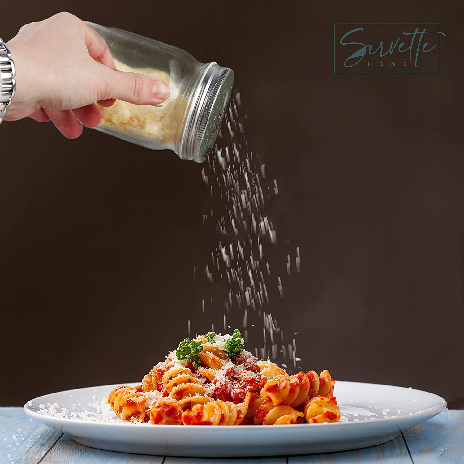 These high-quality glass shakers can be used with grated parmesan cheese, sugar, or any of your favorite spices.