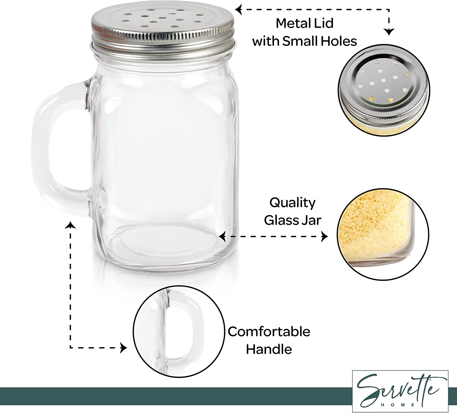 - Designed with a stainless steel perforated cap allows for a measured pouring of whatever condiment or spice is placed inside Easy to clean and maintain, Shakers with handle for easy pouring.