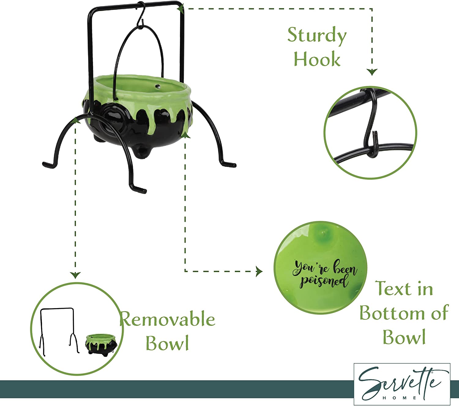 Regular price $24.99Celebrate This Saint Patrick’s Day with the perfect cauldron décor. The cauldron bowl is made of a quality ceramic, hand painted and glazed. It is a black bowl with a green color oozing made to look like poison. The bottom of the bowl says you’ve been poisonedThe candy dish is the perfect place to “hide your stash of gold”, serve your favorite sweets and candies, or just to put out as Holiday themed décor. The cauldron candy bowl can hold a generous amount of candy. See images for exact measurements. The Perfect Holiday Gift for your mother, father’s friend, or even to yourself! You just can't have Halloween without candy! With our quality ceramic made to look like a real cauldron, this bowl will add so much to your Halloween party, décor and for those adorable trick or treaters. Made of quality ceramic and sturdy metal stand. "you've been poisoned" text on the bottom of candy bowl. Fill up Halloween themed candy bowl with all your favorite kinds of candy.