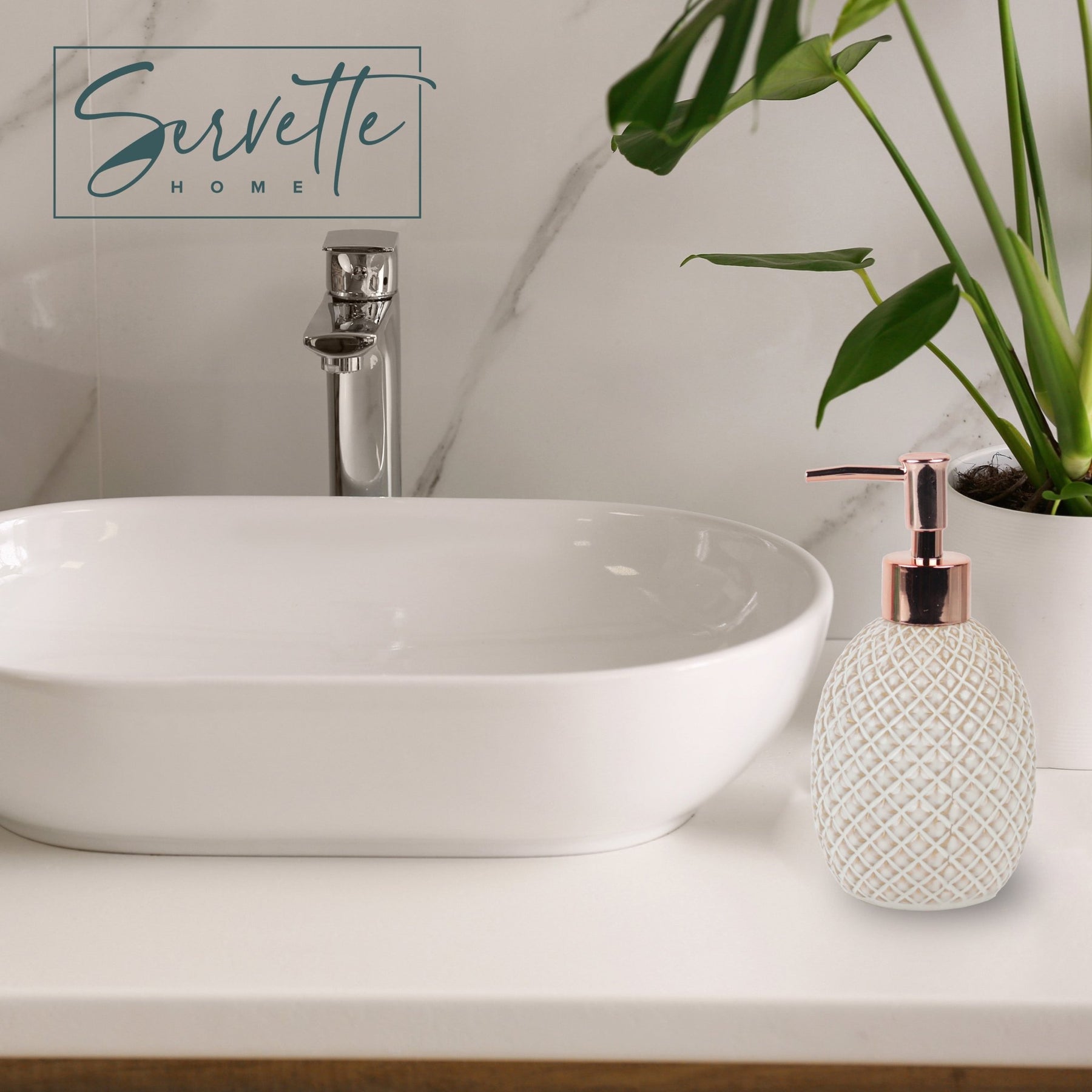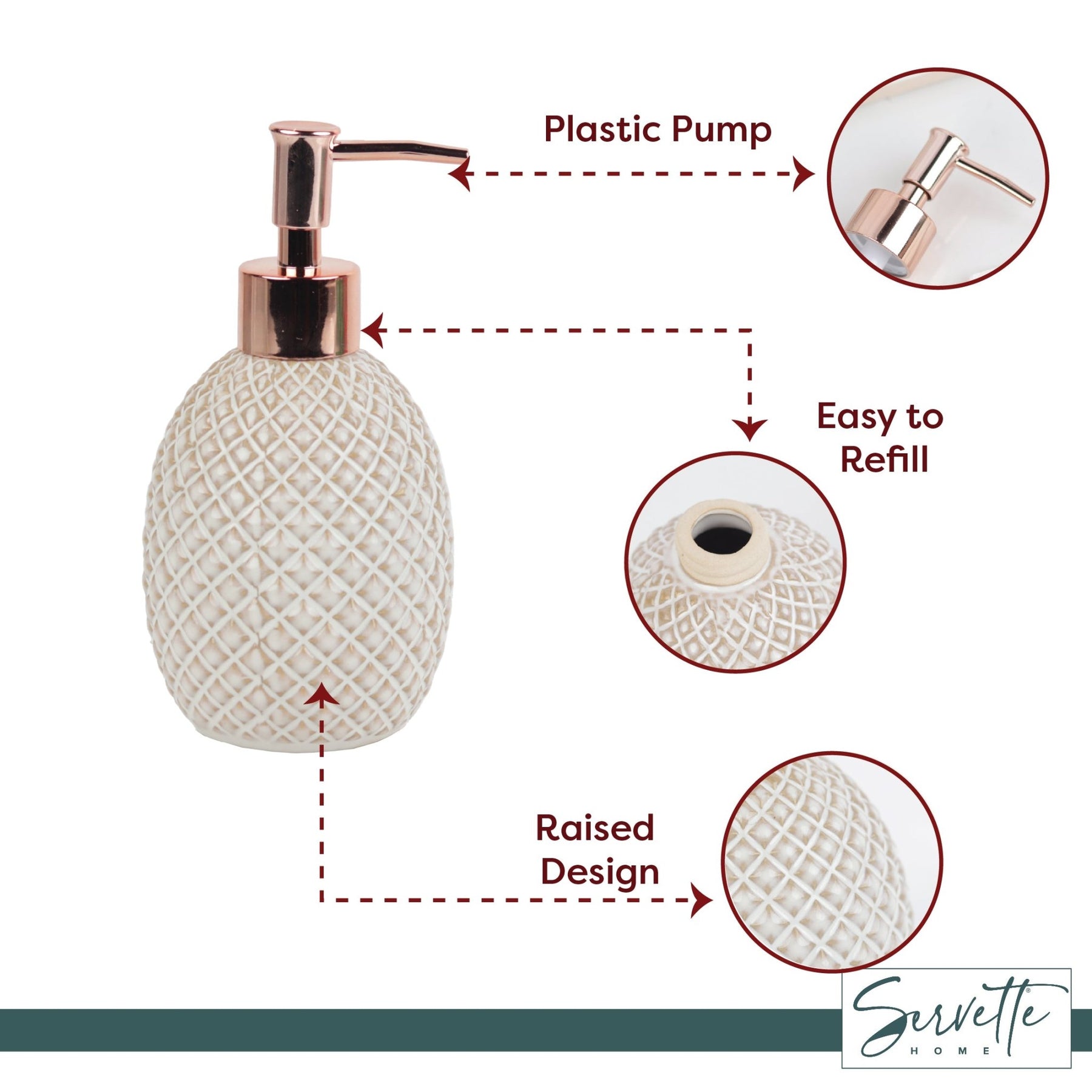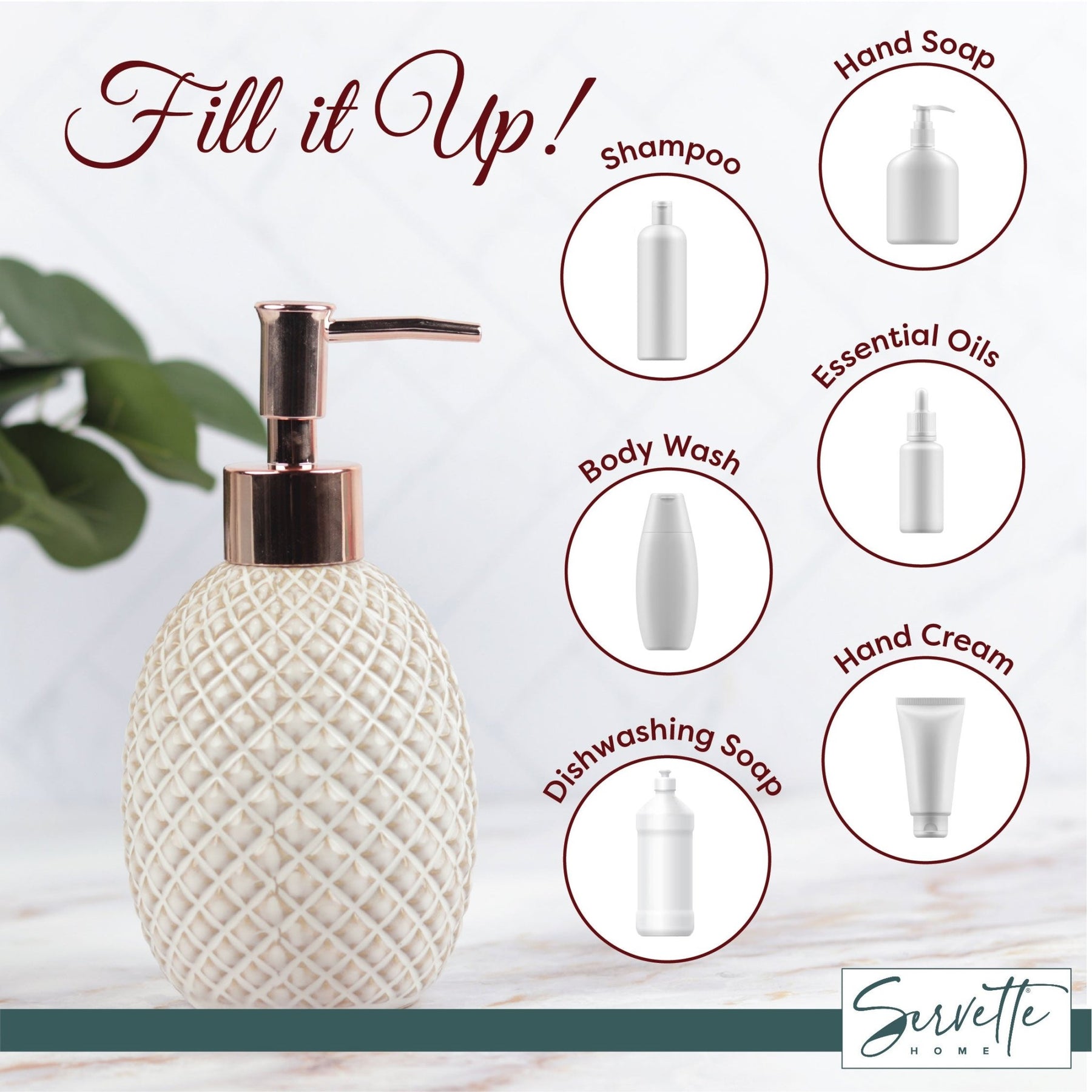 Regular price $17.99This hand soap dispenser is made of high-quality ceramic materials and is very durable. Use this as a bathroom soap dispenser as it has the ability to resist stains, rust, and odor. It is suitable for wet surroundings and daily use. The liquid soap dispenser has a large capacity serving as a multifunctional soap dispenser refill, good for the environment and budget. Use this ceramic soap dispenser for storing and dispensing liquid soap, dish soap, lotion, shampoo, hand soap, essential oils, etc. The kitchen soap dispenser has a classic and timeless design perfect for any home decor style, from farmhouse to modern. Making it an excellent choice for most families.