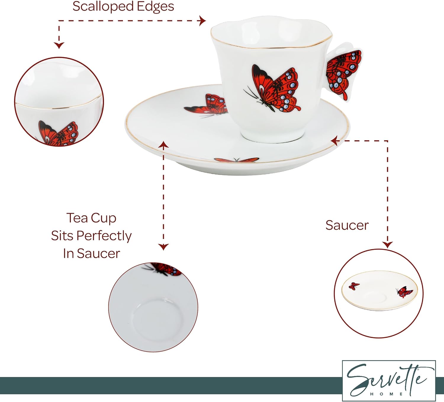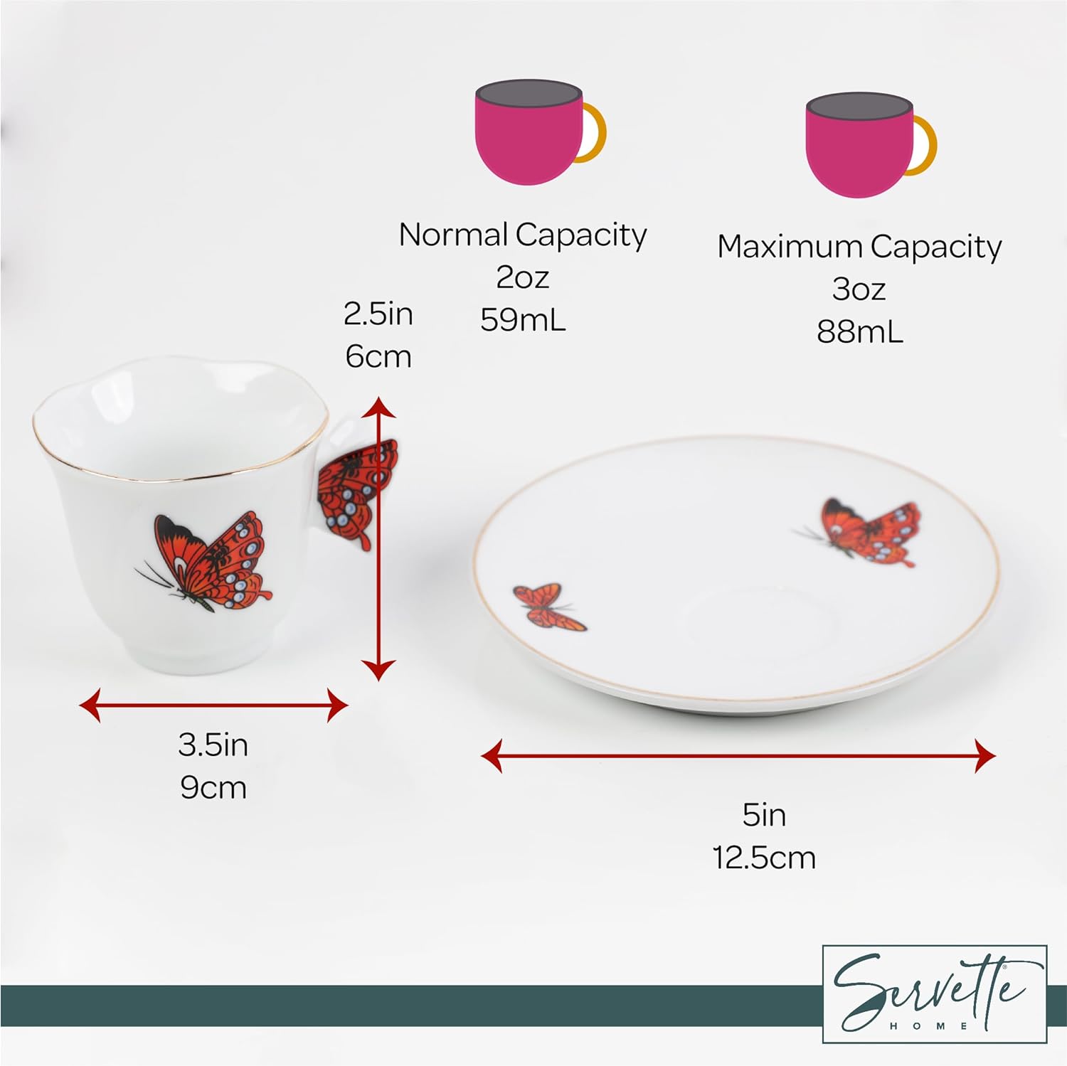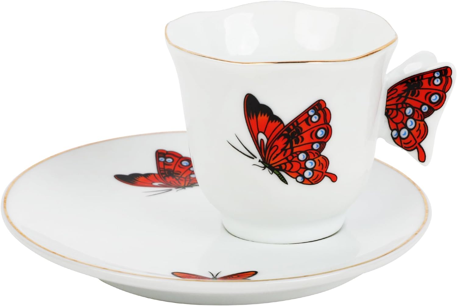 Cup and Saucer Set - Mini Coffee Mug with Plate Tea Set - Ceramic Butterfly Design