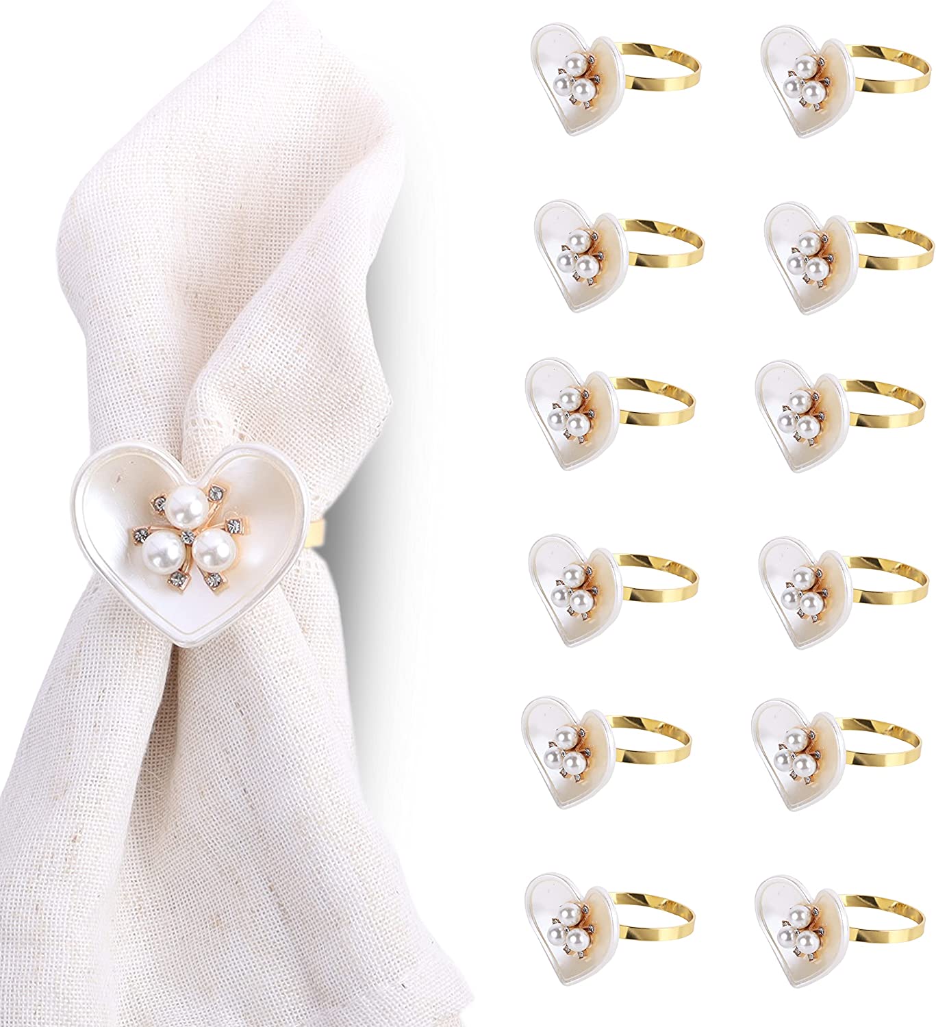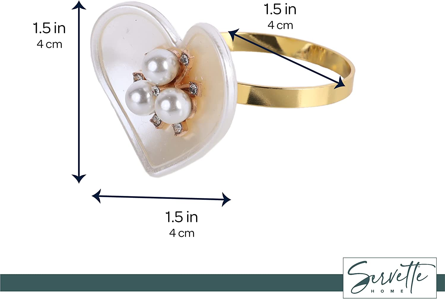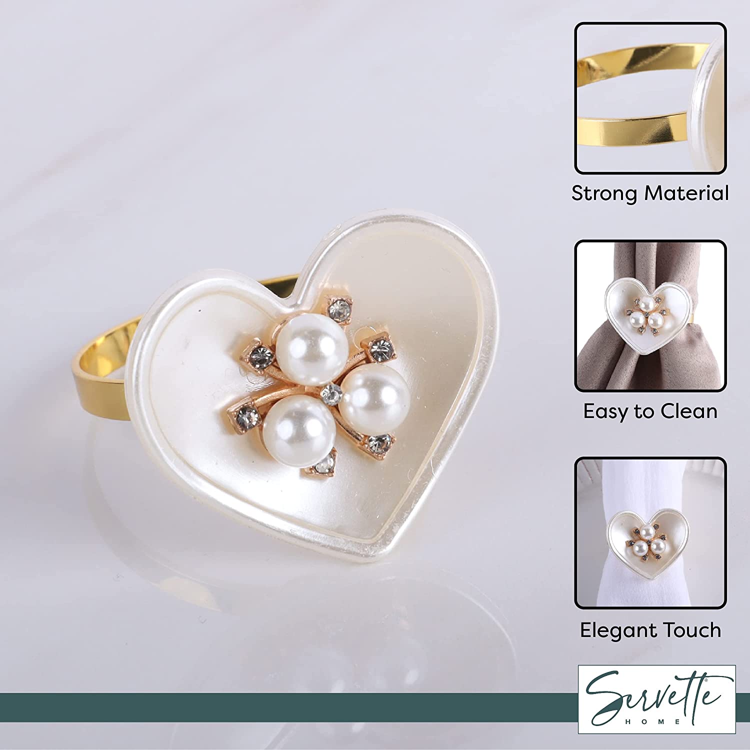 Heart Design Acrylic Pearl Napkin Ring - Set of 4