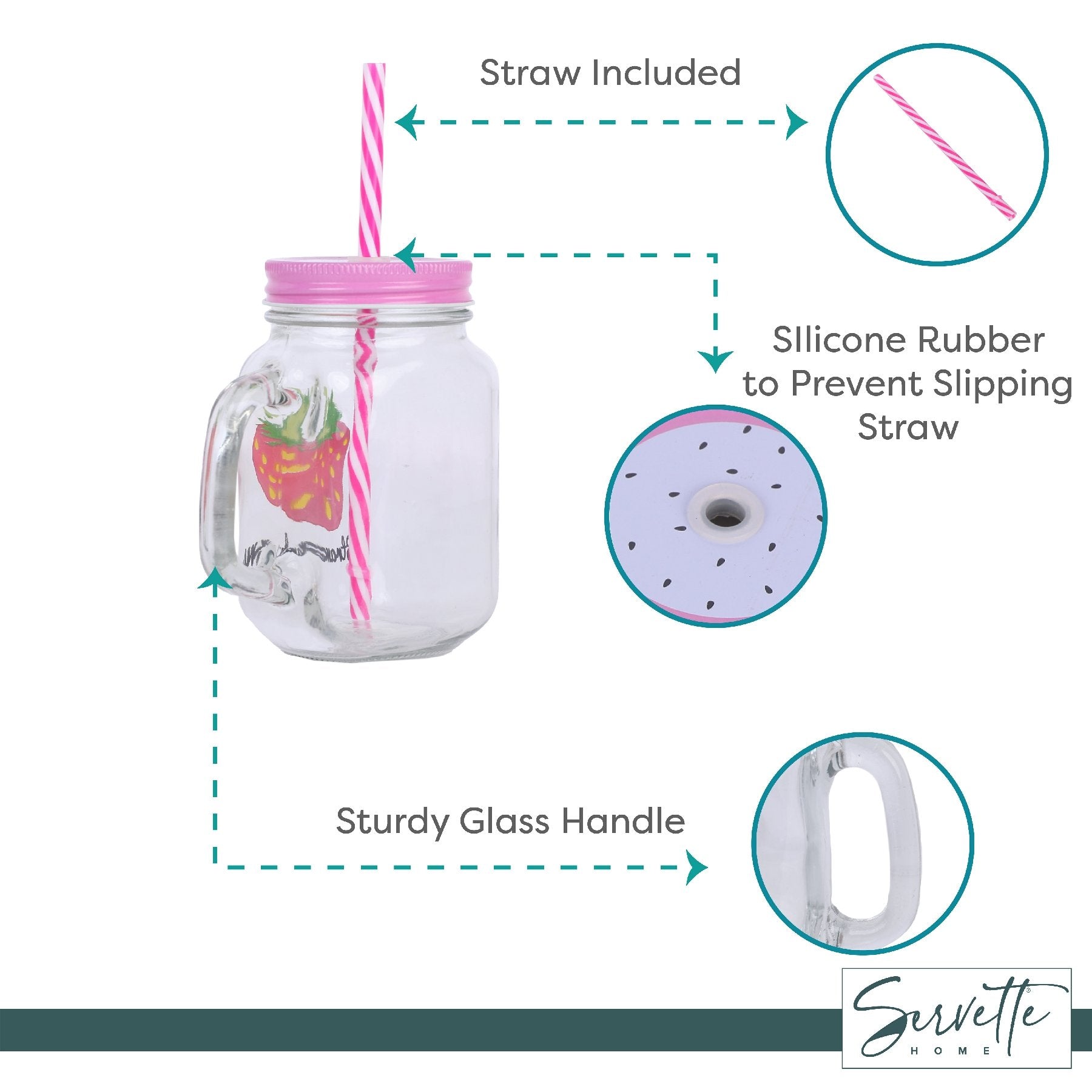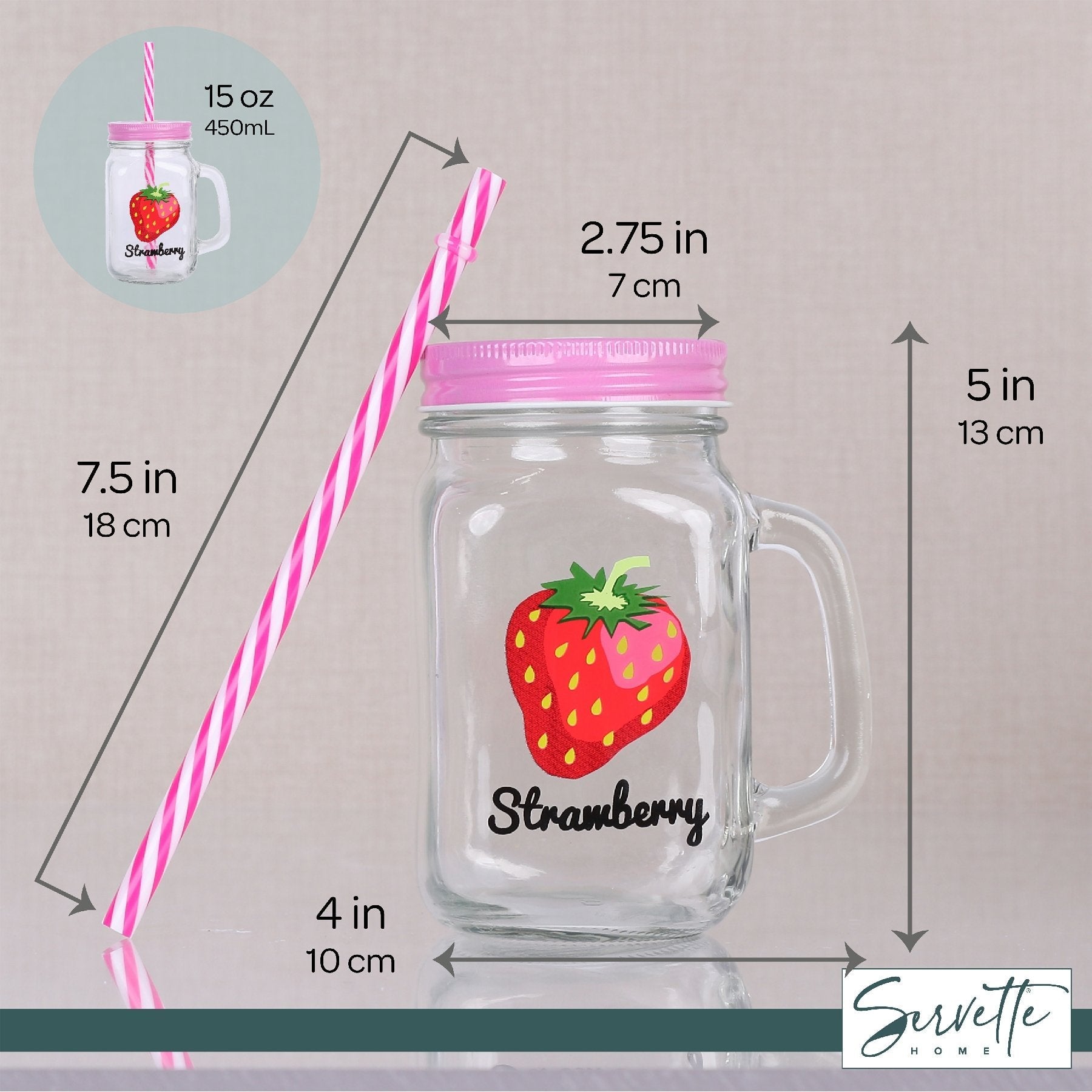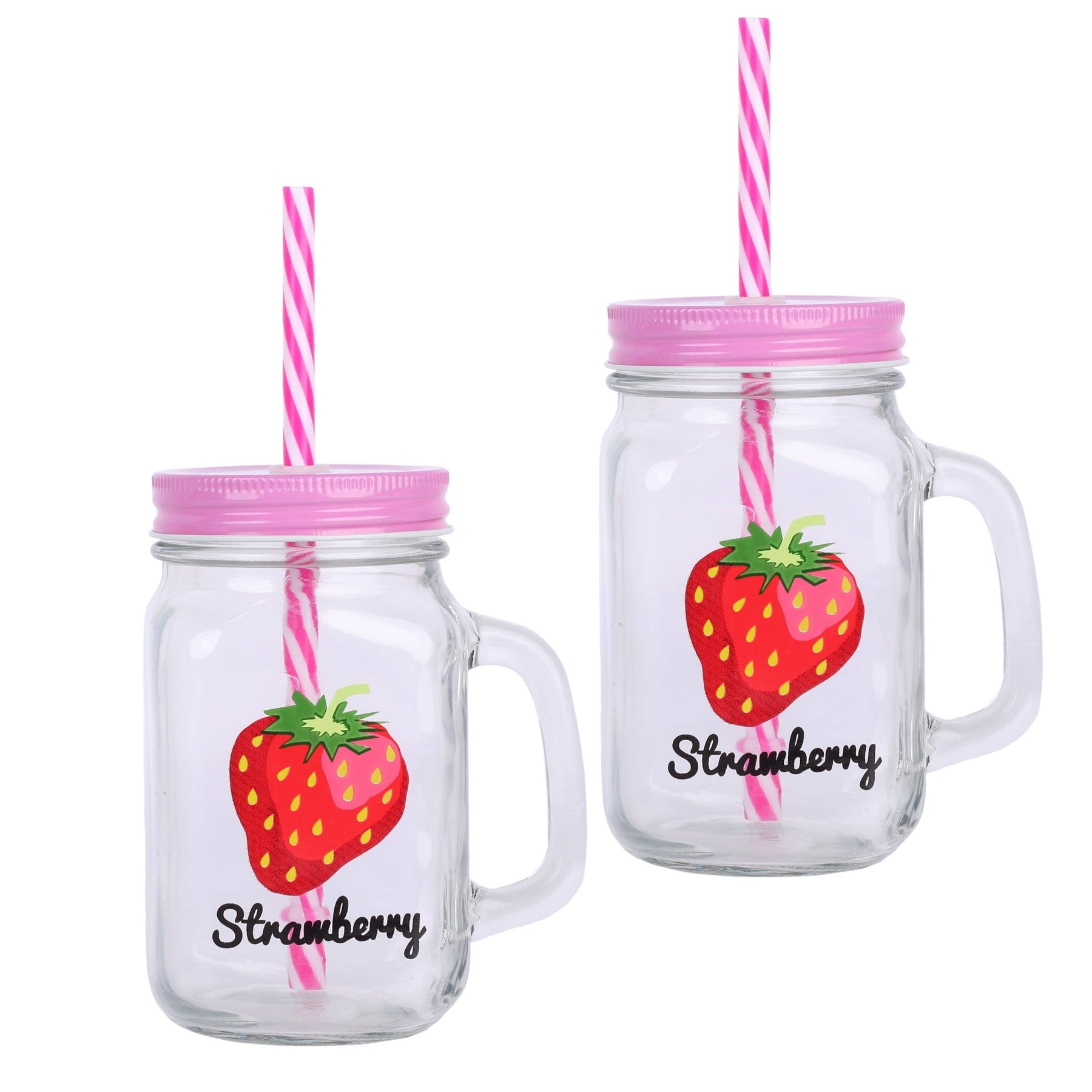 Mason Jar 450ml with Printed Strawberry - Set of 2